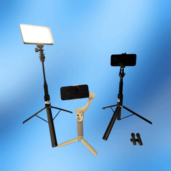 The Mobile Kit is designed for independent and small group student-led production. This kit empowers young people to see their personal devices as content creation tools and introduces them to a variety of inexpensive equipment that can take their production to the next level. The lightweight tripod and LED light will support recording in just about any setting, while the gimbal stabilizer will help students experiment with moving video capture including exciting B-roll and other inventive social-ready and cinematic capture. Note: this kit does not include a device.